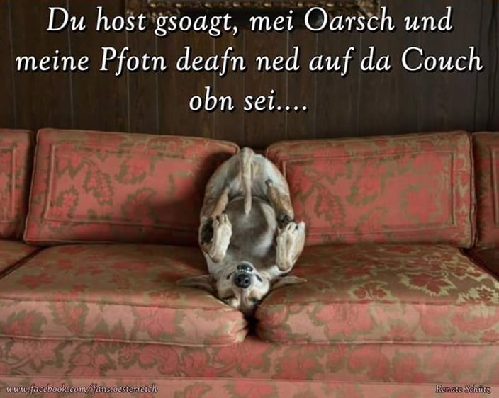 2016 · 12. September 2016 Darf er auf's Sofa? Kreative Lösung für kreative Hunde - auf bayrisch tagPlaceholderTags: lustig Kommentar schreiben Kommentare: 0