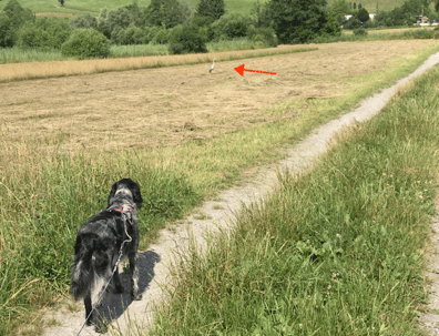 Wie diese differenzierende Verstärkung geht, zeige ich euch mal bei meiner Aufgabe Stoppen in Distanz. Da sollte ich auf das Signal "Stopp" an Ort und Stelle bleiben. Das kann ich nicht immer, aber immer öfter... Doch guckt selbst: