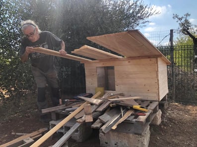 Vito und Freunde bauen die Hütte für Maryj fertig. morgen muss alles parat sein, damit nicht noch mehr Pensionskosten anfallen und wir die Hundemama endlich aufs Canidiso holen können!