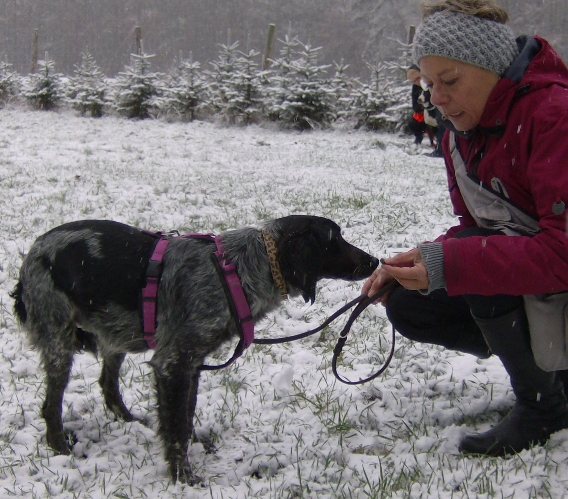 Esther war heute auf dem Spaziergang bizzi übermütig. Sie hat mich nämlich eine zeitlang mit der Schleppleine am Boden mitlaufen lassen. Dann war da aber plötzlich etwas Spannendes im Wald. Glaubt mir, ich habe es Esther gezeigt! Aber bis sie begriffen hat, dass ich da nachgucken gehen muss, war ich schon weg vom Weg und habe mich zu dieser spannenden Stelle vorgearbeitet. Esther hat den Trillerpfiff gemacht. Den hab ich zwar auch schon kennen gelernt. Aber in diesem Augenblick war das...