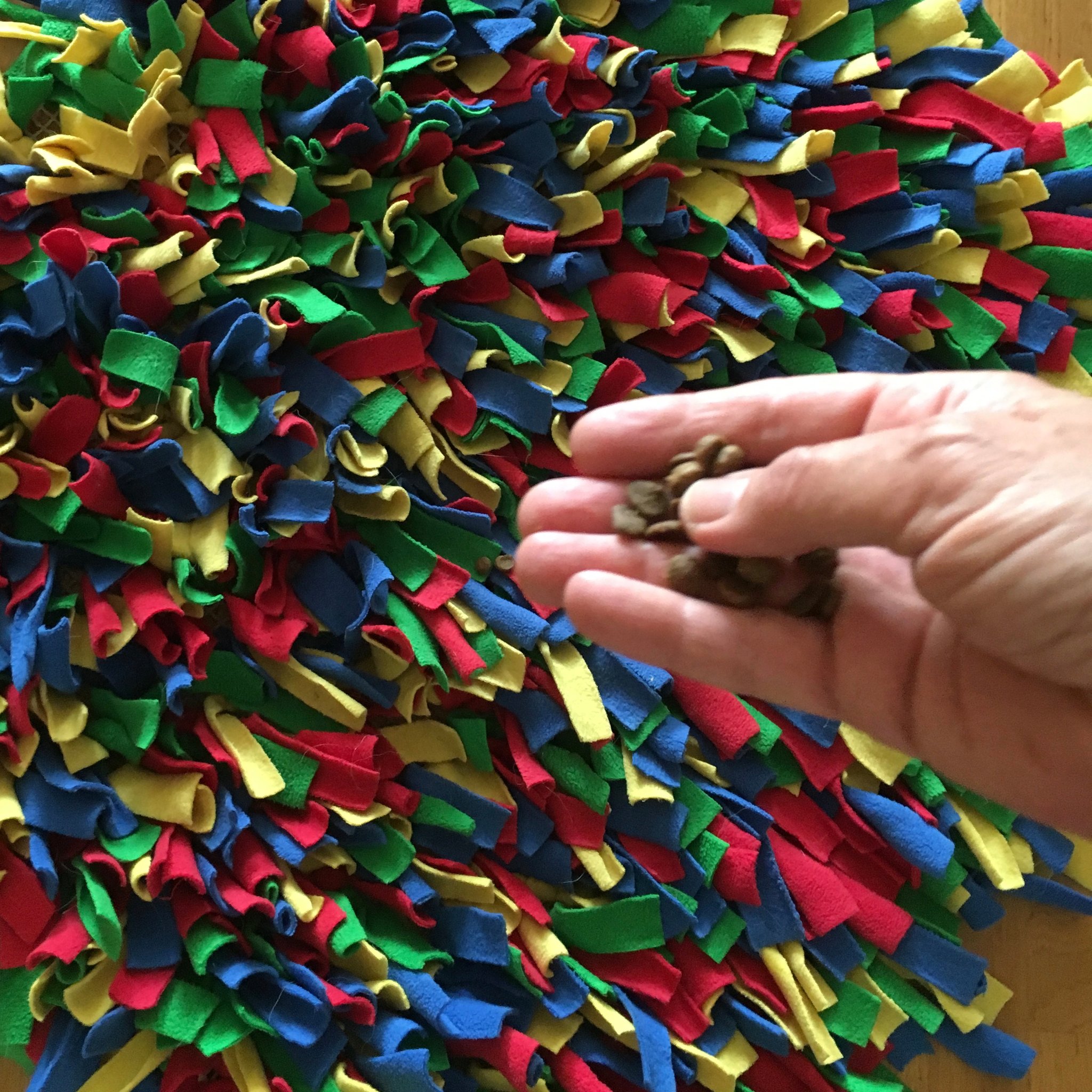 Oder ich könnte auch sagen: Wer suchet, hat Spass! Denn wie viele meiner Hundekumpels auch, mache ich sehr gerne Suchspiele. Etwas suchen, finden und es dann fressen oder damit spielen dürfen – das macht so richtig Laune! Zu Hause habe ich beispielsweise den Schnuffelteppich oder das Schnuffel-Pad, in dem Leckerli für mich versteckt sind.
